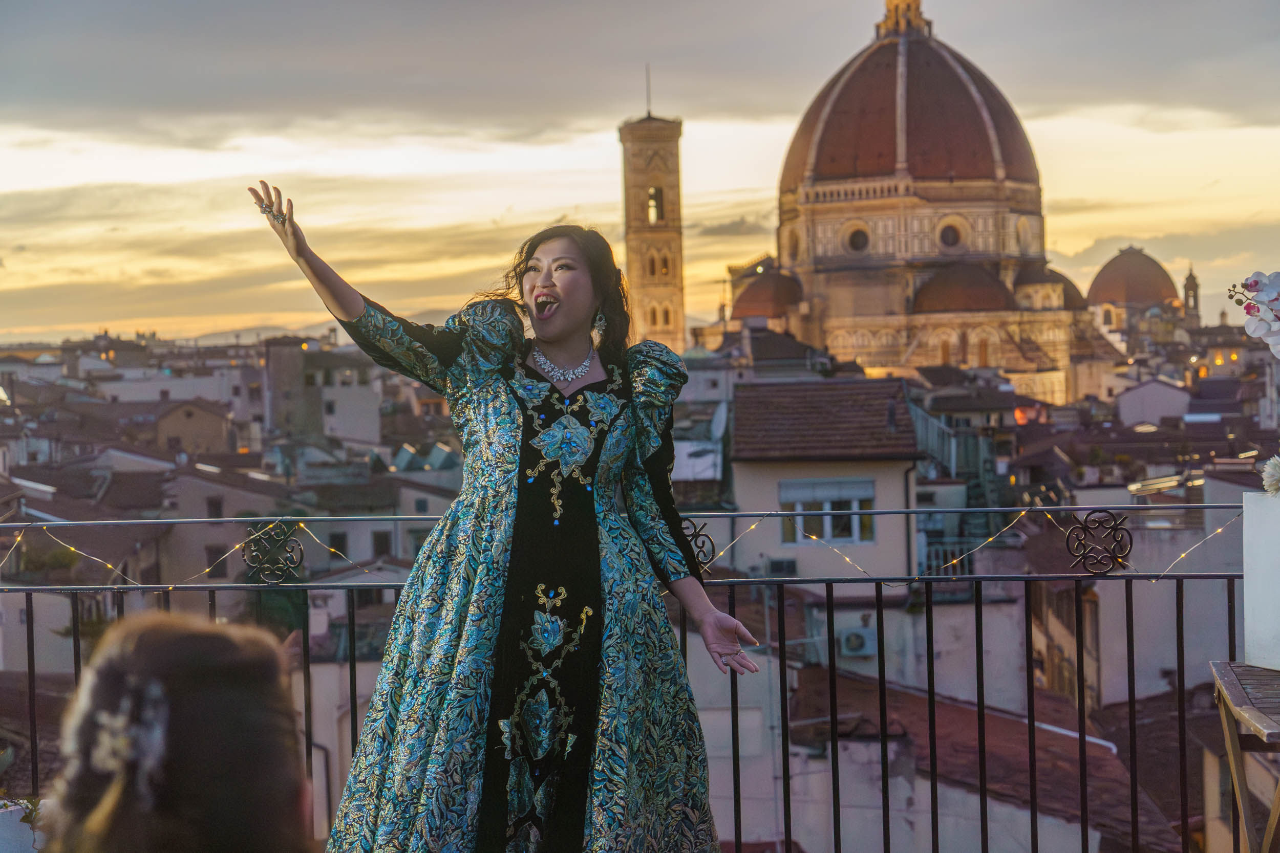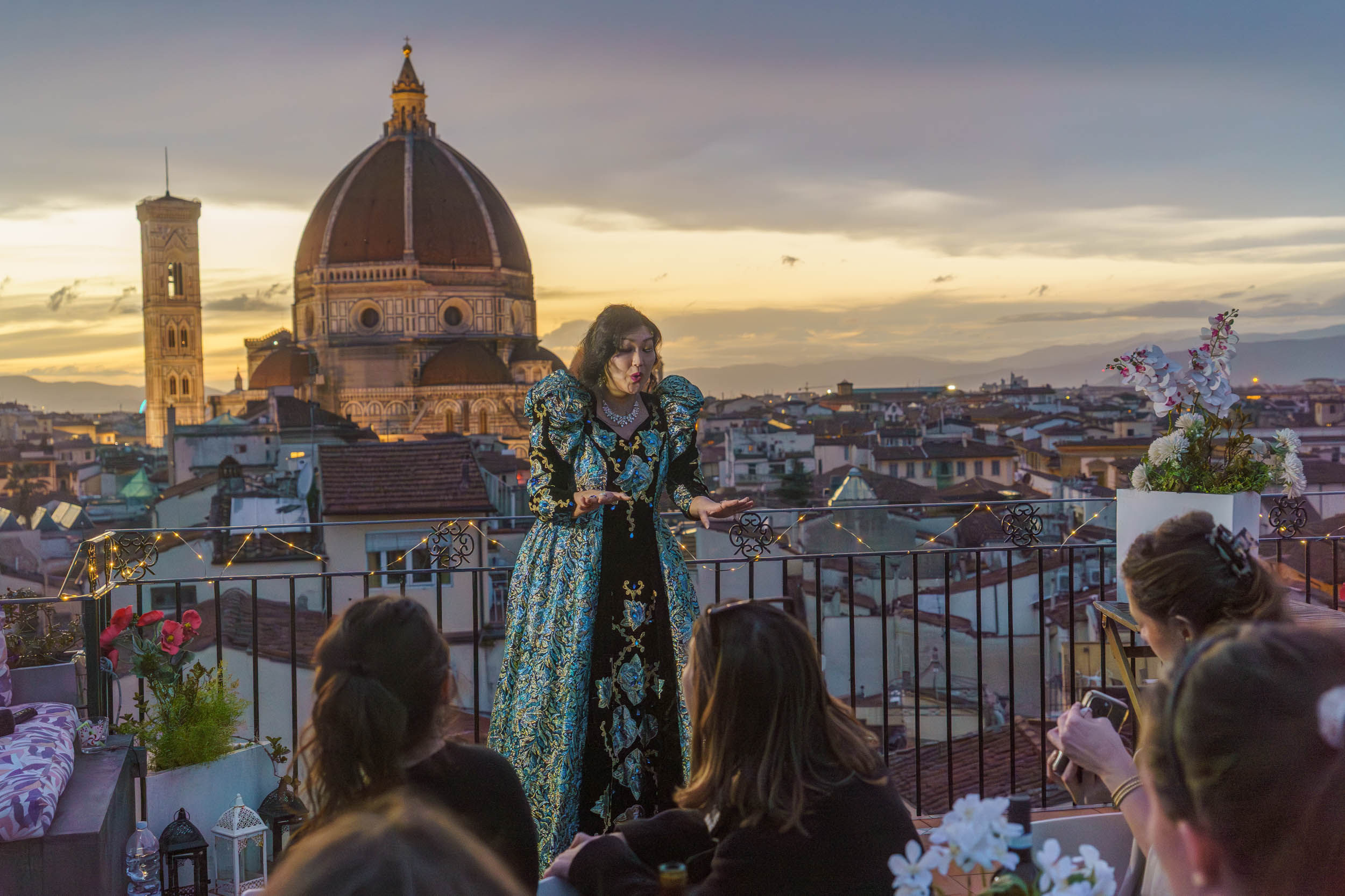 Immerse yourself in the timeless magic of Italian opera performed live in an intimate rooftop setting, as the city of Florence sparkles beneath you. Our talented artist will transport you through beloved arias and melodies while you enjoy your meal surrounded by panoramic views of the Duomo, ancient rooftops, and rolling hills beyond.